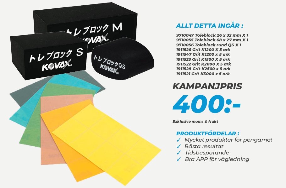 Just nu! – Ett fantastiskt paketpris på Kovax produkter! Komplett paket med Klossar + Slippapper / slipark för endast 400:- + moms & frakt. Kontakta oss eller besök vår butik för beställning & köp!