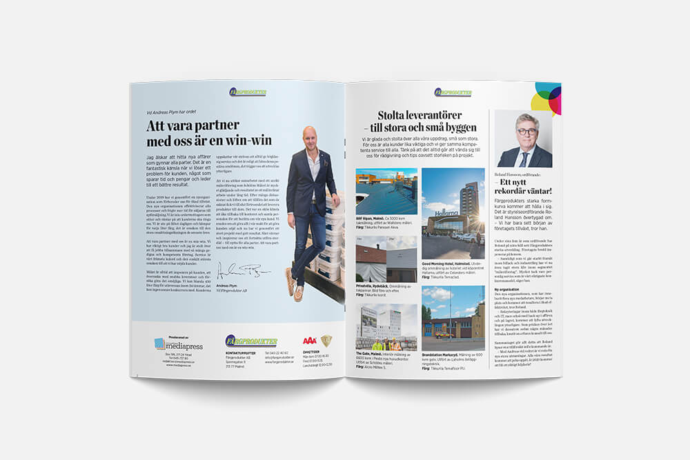 Vår kundtidningen NYANS riktar sig till måleriföretag, bygg & entreprenad, industriföretag, billack & verkstad samt privatpersoner som vill följa färgprodukters senaste projekt & nyheter. I tidningen nyans samlas det gångna året för färgprodukter där ni kan följa våra senaste projekt.